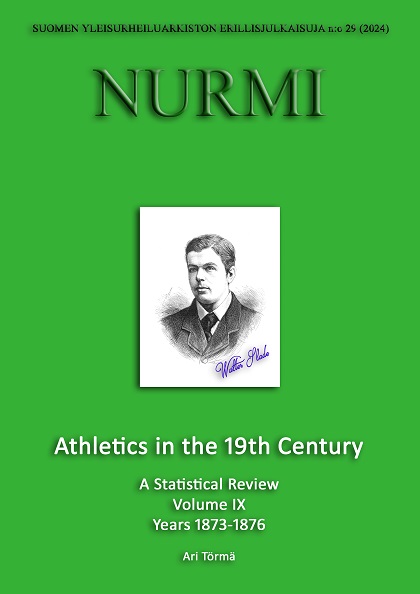 ![]() ![]() ![]() | Yleisurheiluhistorian julkaisutAthletics in the 19th Century![]() ![]() ![]() ![]() ![]() ![]() ![]() ![]() ![]() Kysymyksessä on kirjasarja, jossa tavoitellaan koko 1800-luvun kattavaa tilastokirjasarjaa nykyaikaisesta yleisurheilusta. Ensimmäiset yhdeksän osaa kattavat vuodet 1881-84, 1885-88, 1857-64, 1849-56, 1801-48, 1889-92, 1865-68, 1869-72 ja 1873-76. Kirjat voi hankkia omakseen ottamalla yhteyttä Suomen yleisurheiluarkisto-yhdistykseen (pj. Mikko Nieminen). The Early History of Modern Field Athletics![]() Kirja The Early History of Modern Field Athletics on 127 sivuinen erillinen katsaus niihin yleisurheilun varhaisiin vuosiin, jotka eivät tule käsitellyiksi alla mainitussa kirjasarjassa. Kirja on julkaistu osana Suomen yleisurheiluarkiston "NURMI"-sarjaa ja on yhdistyksen jäsenille ilmainen. Voit hankkia kirjan omaksesi ottamalla yhteyttä Suomen yleisurheiluarkisto-yhdistykseen (pj. Mikko Nieminen). The Greatest Athletes of the Modern Era![]() ![]() ![]() ![]() ![]() ![]() ![]() ![]() ![]() ![]() ![]() Kirjasarja julkaistaan osana Suomen yleisurheiluarkiston "NURMI"-sarjaa. Ensimmäinen kirja julkaistiin vuonna 2010 ja viimeisin marraskuussa 2015. Sarjassa on nyt julkaistu seuraavat osat: